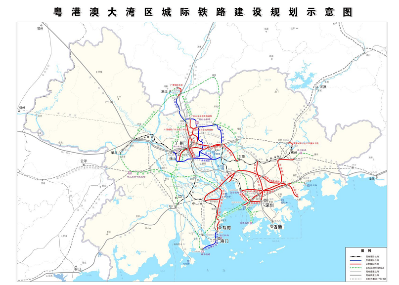国家发展改革委公布的《粤港澳大湾区城际铁路建设规划示意图》中,透露出不少未来高铁和城际铁路建设规划。