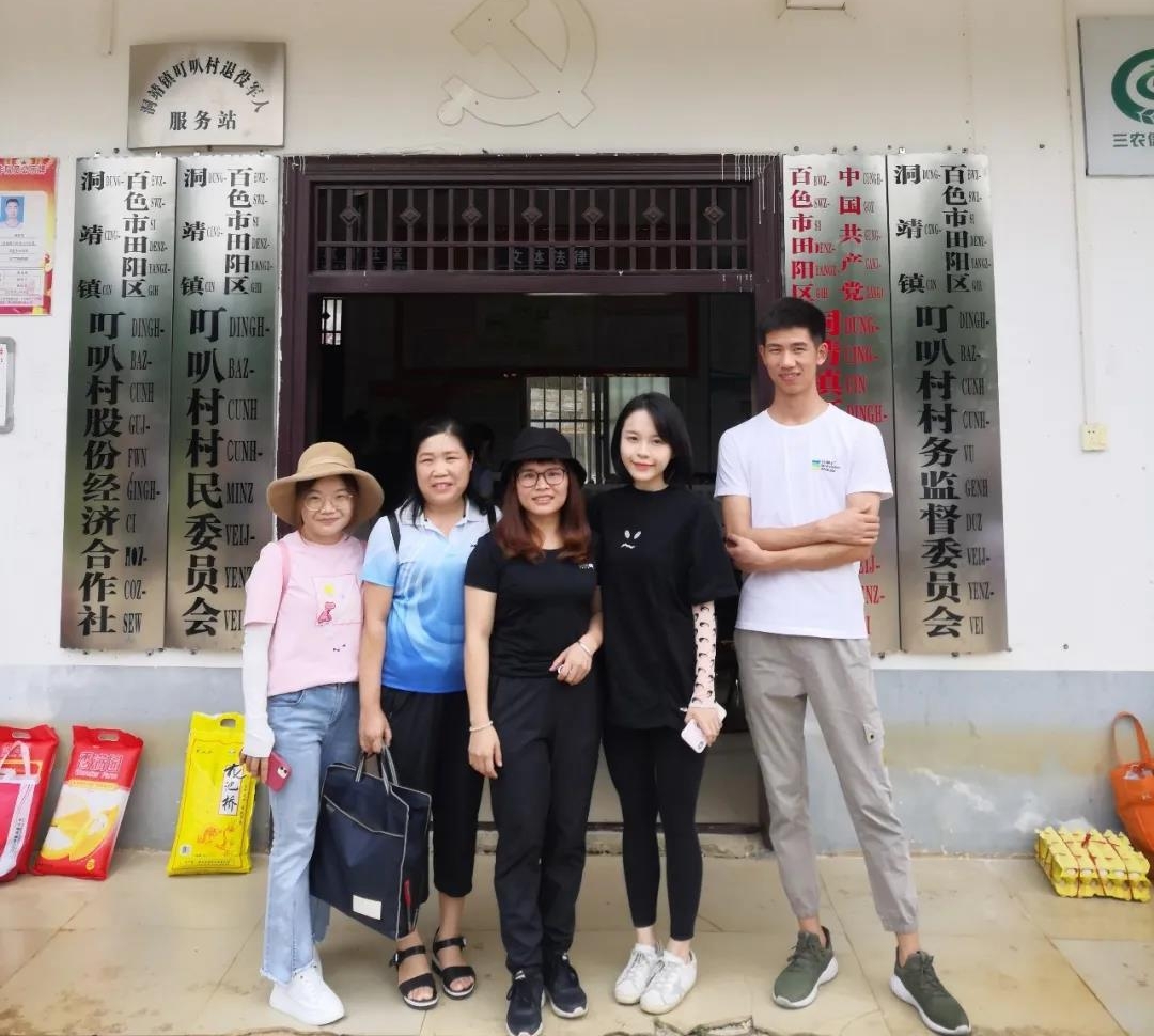 按照东西部扶贫协作相关指示,深圳市南山区对口帮扶广西田阳区,作为南山区的一员,王世闰老师和陈品君老师利用周末时间主动跟随老乡家园第一小学的黄淼老师和黄小梅老师一起下乡开展扶贫工作。二位老师主动购买了食用油和牛奶等下乡慰问礼品,经过一个半小时的车程到达扶贫点——洞靖镇叮叭村,简单的任务分配后几位老师一同进入贫困户家里。