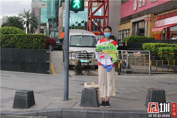 8月5日这天,有4个小姑娘格外引人注目。她们一对是亲姐妹,一对是好同学,分别站在京基100和荔枝公园的路口劝导交通。这对姐妹花来自社区的“郑氏家族”,这是一个大家庭,姐弟四个都喜欢参加社区活动。这一天他们兵分两路,妹妹去了其他社区参加创文大扫除,大姐二姐就来了老围社区。