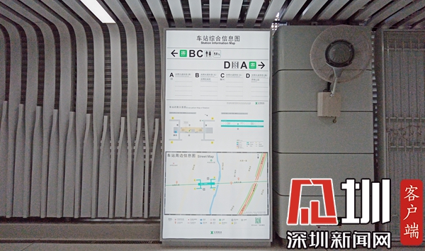 展厅内的导向标志进行了一体化设计,综合信息、周边信息等都放在一张图上,让乘客可以一图了解各出入口情况,更加方便出行。