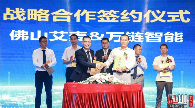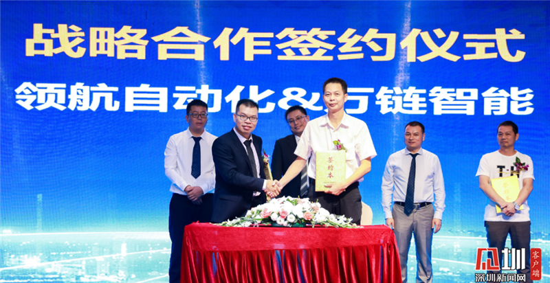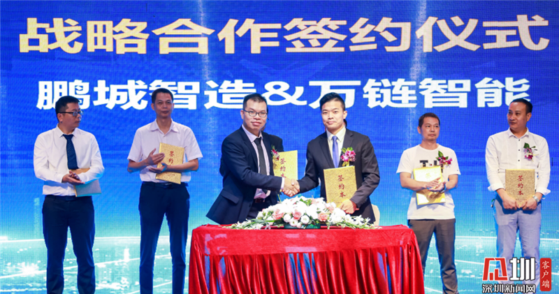 发布会还举行了万链智能和东莞市博铭自动化科技有限公司、东莞市领航自动化科技有限公司、佛山艾麦工业皮带有限公司、深圳市鹏城智能制造产业发展有限公司的战略合作签约仪式。