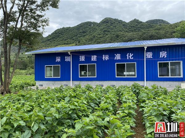 这是隆林克长乡猴场村石漠化山区桑蚕高产示范基地,目前发展了2000亩种桑养蚕产业,村民们用上了深圳援建的 标准化蚕房。