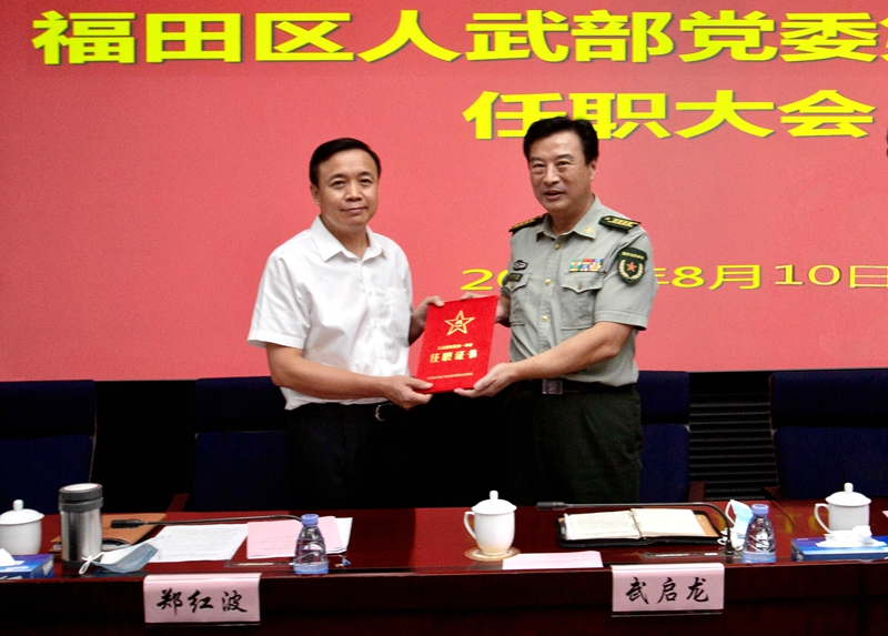 会议由福田区委常委、人武部部长李惟海主持,常清华大校宣读了第一书记党内任职通知,武启龙大校颁发任职证书。