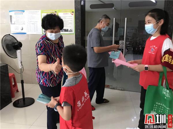 “叔叔,这是深圳市民文明手册,请您看看。”“阿姨,这是争做文明市民,共创文明城市的一封信,请您阅读。”稚嫩的声音,清脆响亮,进进出出的居民纷纷接过孩子们手中的创文宣传资料。