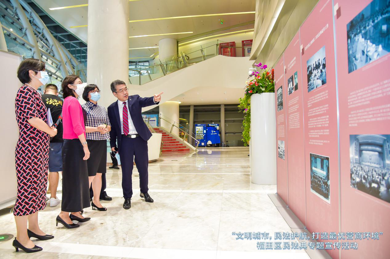 此次活动福田区精心策划了《福田区民法典宣传特展》,以方便让辖区居民更加直观地了解民法典编撰历程及亮点重点。