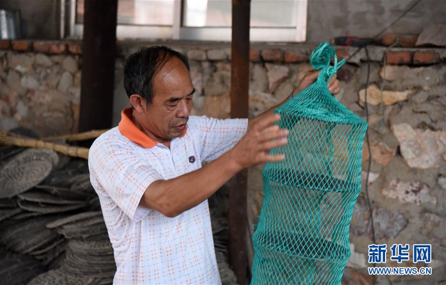 王惠安在家中整理养殖用具(8月10日摄),他是山东省长岛海洋生态文明综合试验区北长山乡北城村的一名扇贝养殖户。新华社记者 王凯 摄