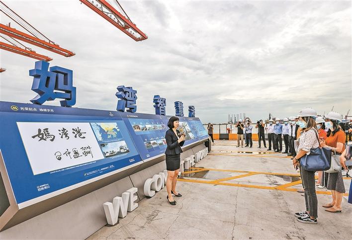 工作人员介绍妈湾智慧港。深圳特区报记者何龙摄