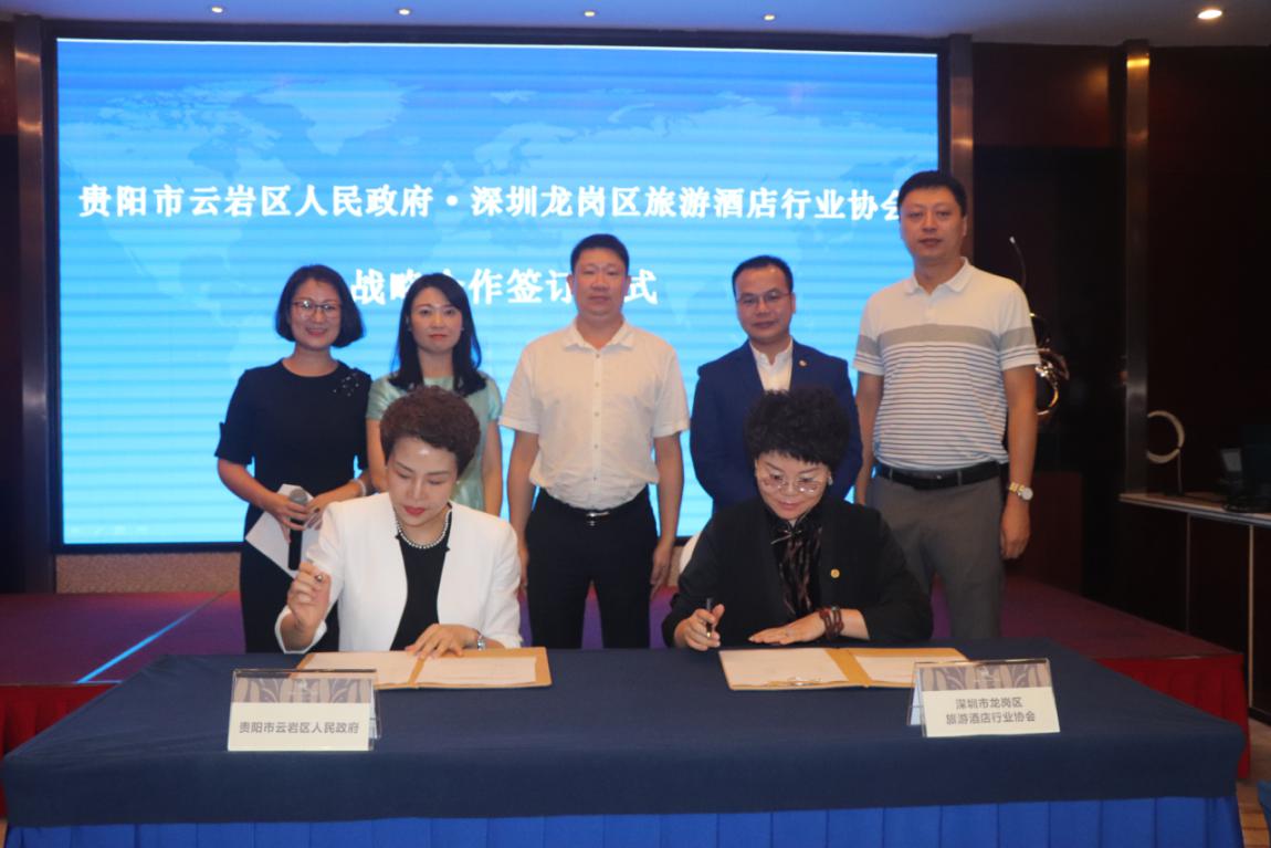 最后,贵阳市云岩区人民政府与深圳市龙岗区旅游酒店行业协会,共同签订战略合作协议。双方建立长期合作关系,全面广泛、深度地进行合作、资源共享,将充分发挥各自优势,就中高端酒店产业资源交流、优势互补、产业导入等开展深入合作。