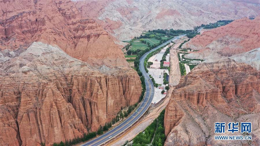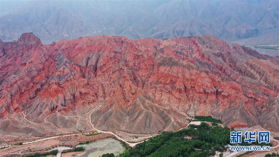 这是6月16日拍摄的位于青海省海南藏族自治州贵德县境内的丹霞地貌(无人机照片)。新华社记者吴刚摄