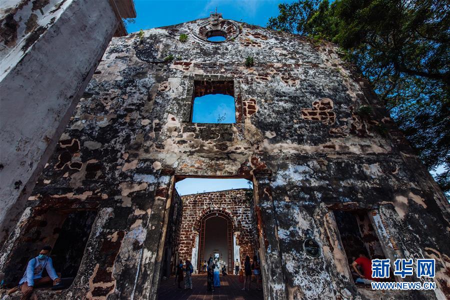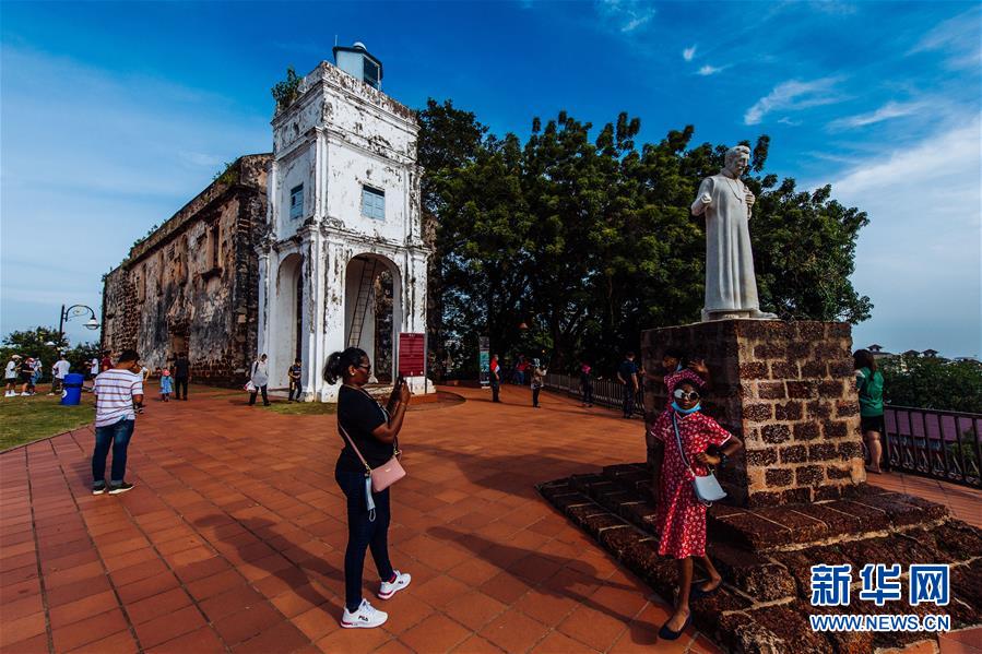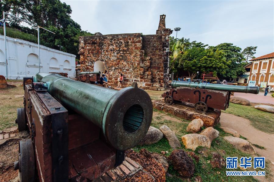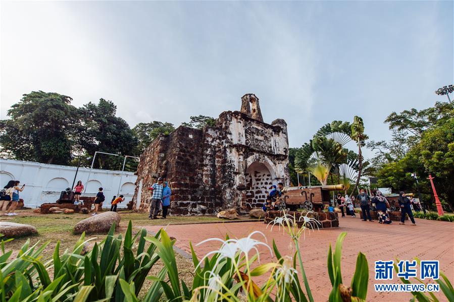 9月18日,游客在马来西亚马六甲圣地亚哥古城门遗址游览。新华社记者朱炜摄