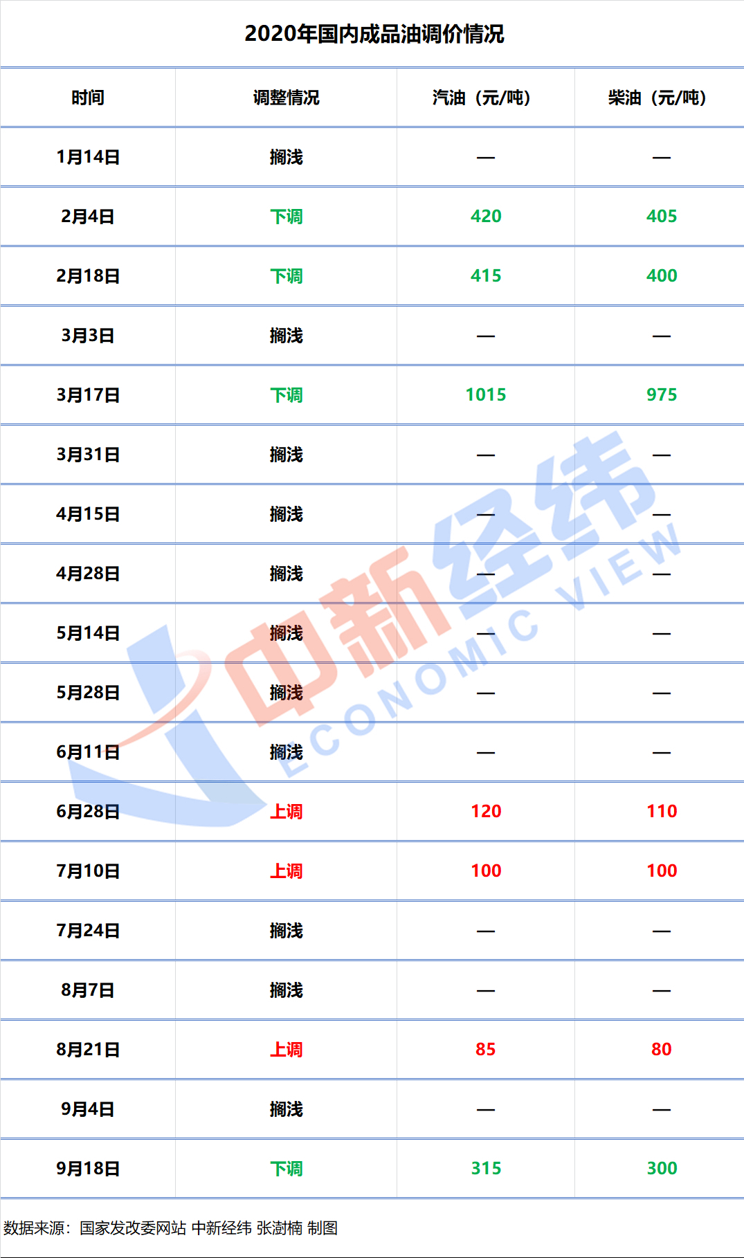 中新经纬客户端注意到,今年以来,国内成品油价格已经历18次调整,其中11次搁浅、4次下调、3次上调,汽、柴油价格分别累计下调1860元/吨、1790元/吨。其中,有六次因触发“地板价”保护机制未能调整。