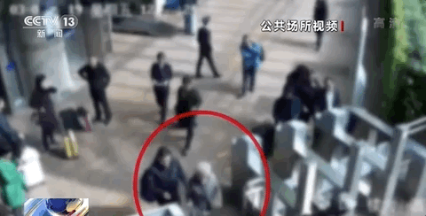 画面显示,刘先生与王老太太母子二人赶往检票口的时候,被告刘女士出现在画面里。走到检票口后,刘女士正好排在原告刘先生和王老太太的后面。当他们准备进入检票口时,刘先生发现自己走错了位置。于是刘先生赶忙带母亲转身,他向旁边倒退了三步。