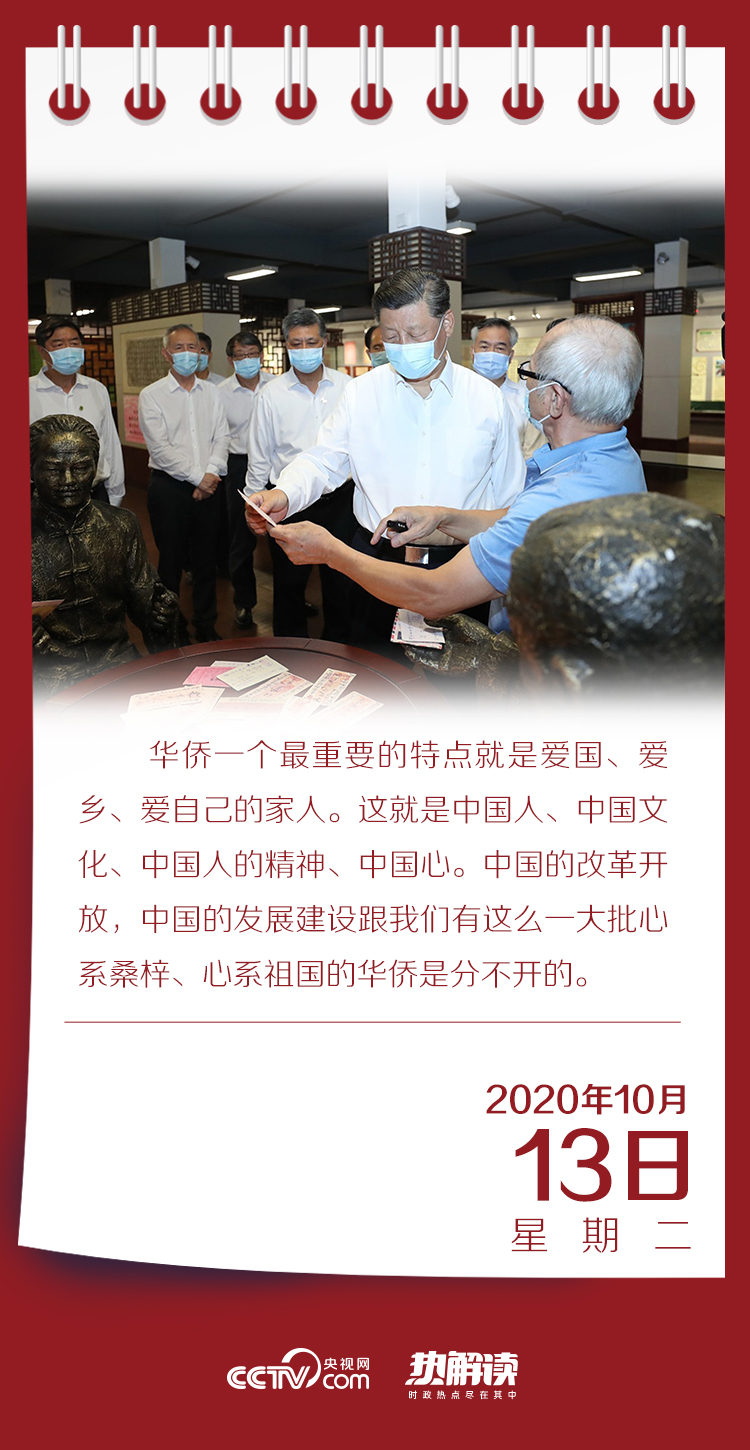 被潮汕侨胞的赤子之心所感染,习近平总书记步行至开埠区街区,面对热情围拢过来的市民群众,深情感言:“华侨一个最重要的特点就是爱国、爱乡、爱自己的家人。这就是中国人、中国文化、中国人的精神、中国心。中国的改革开放,中国的发展建设跟我们有这么一大批心系桑梓、心系祖国的华侨是分不开的。”
