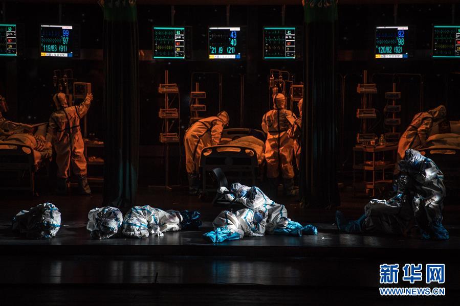 10月17日,演员在表演歌剧《天使日记》。当日,大型民族歌剧《天使日记》在武汉琴台大剧院首演。该剧通过讲述白衣天使的战“疫”故事,弘扬“生命至上、举国同心、舍生忘死、尊重科学、命运与共”的抗疫精神。歌剧《天使日记》聚焦抗疫最前线的普通护士、医生和他们的亲人,塑造了以“兰之念”“方医生”“黄鹤”等为代表的曾为湖北抗疫拼搏奉献的医护人员形象,讴歌了堪当重任的“90后”“00后”医护群体,展示白衣天使向死而生、逆行出征的感人事迹。新华社记者 肖艺九 摄