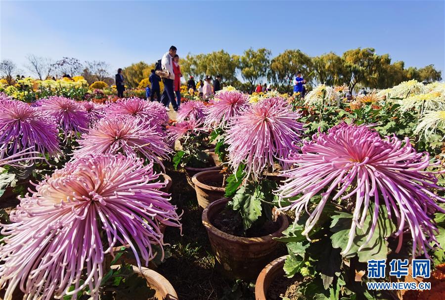 11月8日,游客在沙河市白塔镇栾卸村菊花园游览。新华社记者牟宇摄