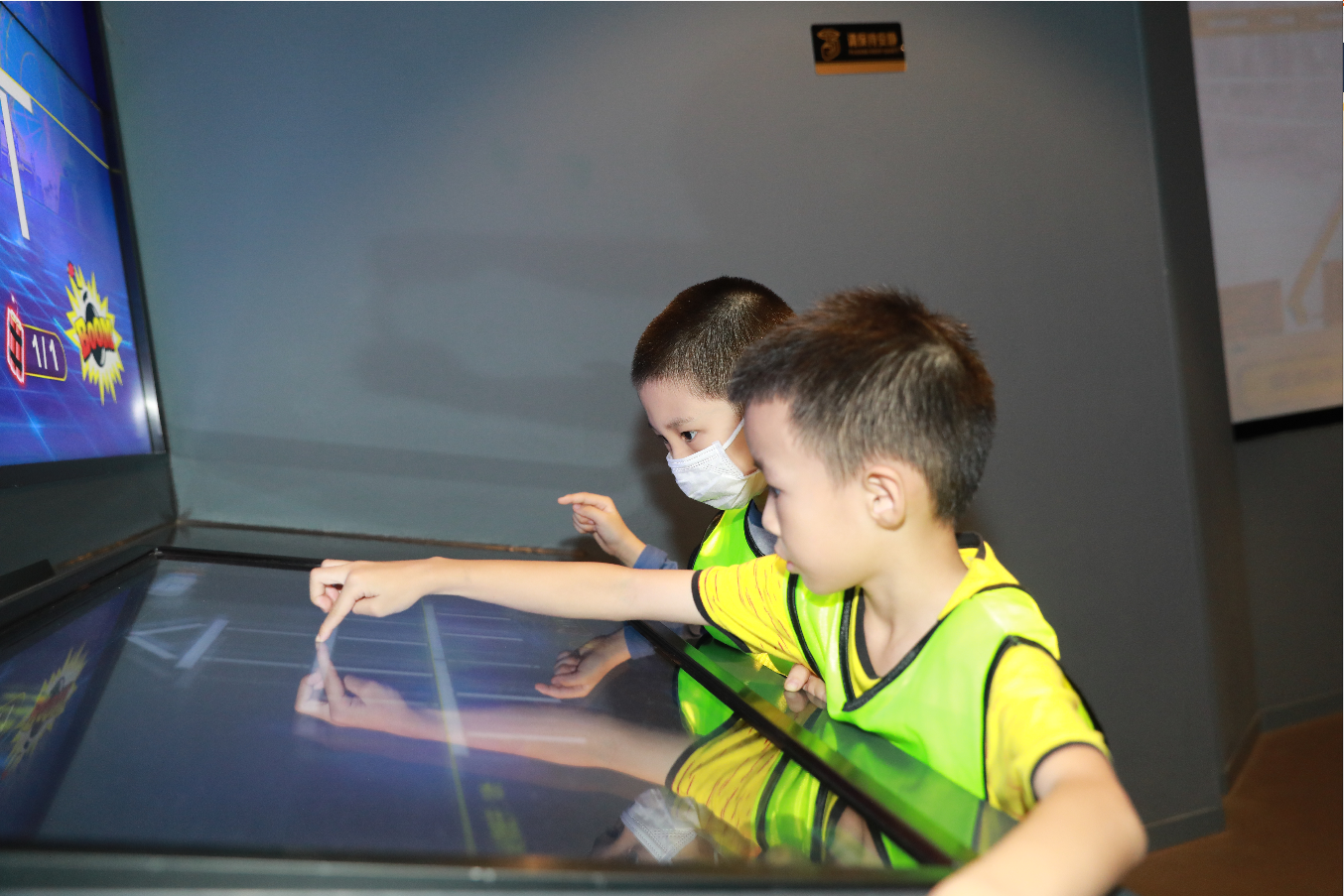博物馆中最让小朋友流连忘返的当属互动厅。孩子们争先恐后的玩着钢结构爆破游戏。通过VR互动,身临其境的感受着站在600米高度的深圳平安金融中心顶层施工的情形。“化身”钢结构设计师、建造师,完成钢结构建筑的设计、制造与安装全过程,并获得《钢结构小小工程师星级考核》证书。