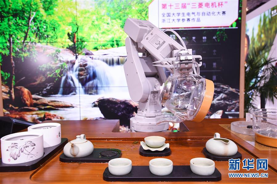 11月6日在技术装备展区拍摄的三菱电机茶道机器人。新华社记者李任滋摄
