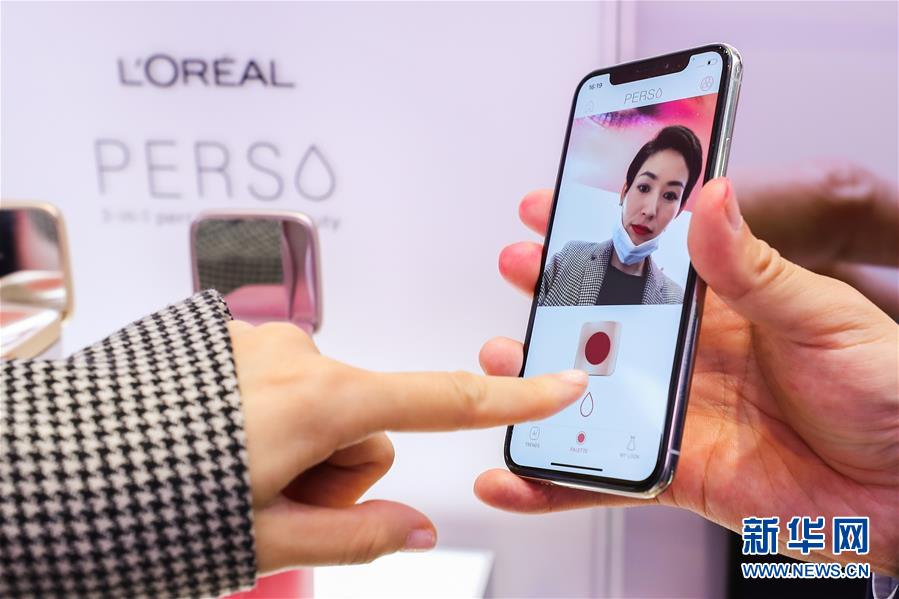 11月9日,参观者在欧莱雅展台体验Perso,选择自己喜爱的唇色。新华社记者张玉薇摄