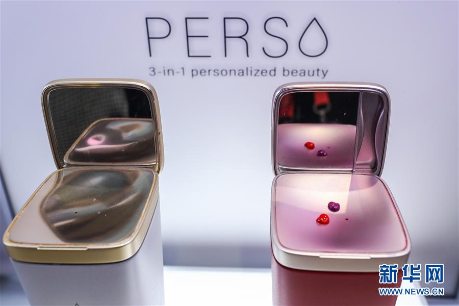 11月9日在欧莱雅展台拍摄的Perso为参观者个性定制的唇彩。新华社记者张玉薇摄