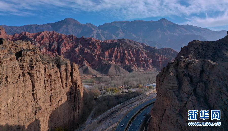 这是11月14日在贵德县拍摄的丹霞地貌(无人机照片)。
