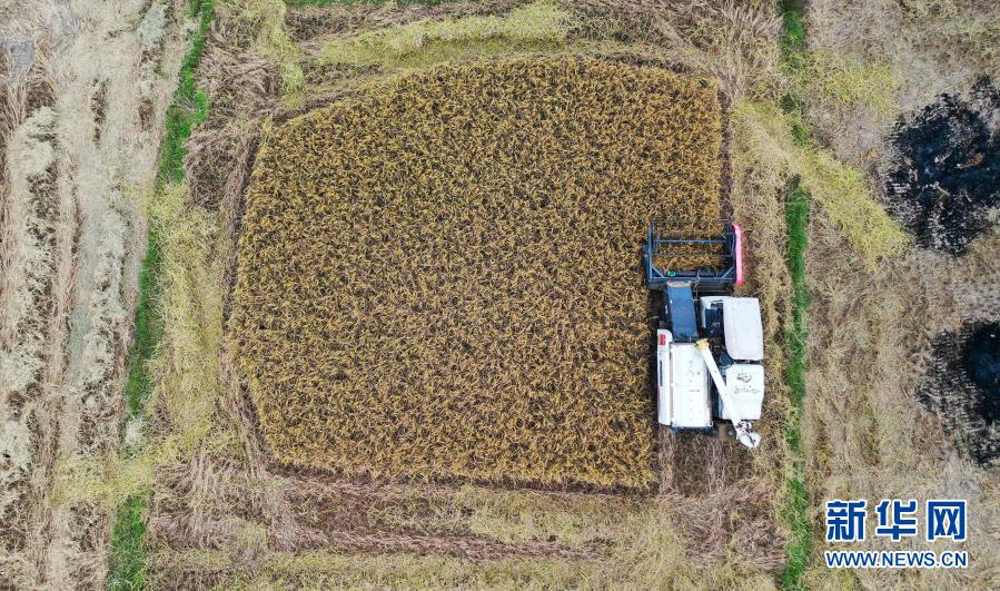 时下,广西钦州市农民抢收陆续成熟的晚稻,确保颗粒归仓。