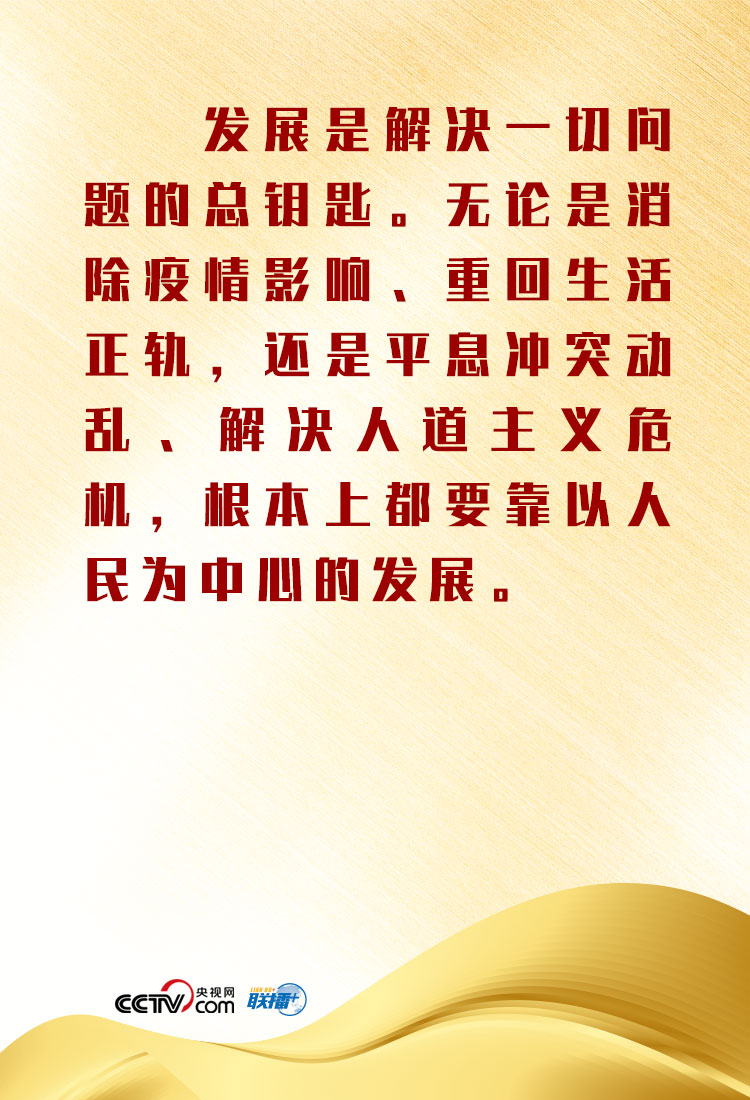 ● 我们要直面疫情挑战,推动国际社会将落实《联合国2030年可持续发展议程》置于国际发展合作核心,将消除贫困作为首要目标,让资源更多向减贫、教育、卫生、基础设施建设等领域倾斜。