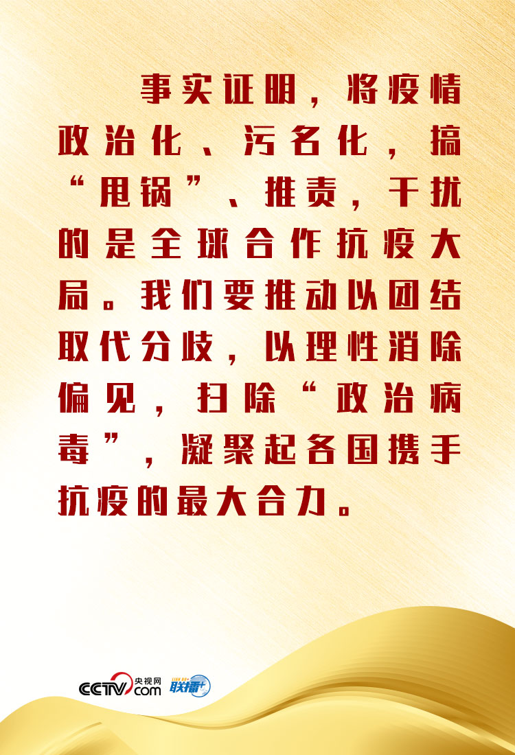 ● 要加强国际联防联控,分享疫情信息,交流抗疫经验,遏制病毒传播。