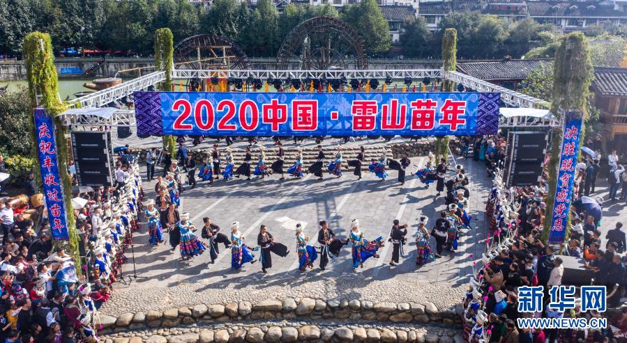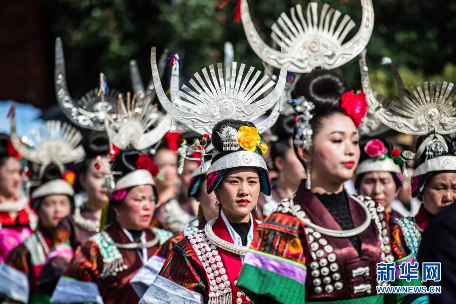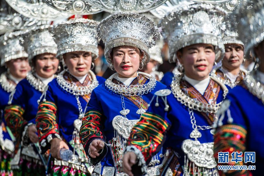 当日,贵州省黔东南苗族侗族自治州雷山县举行庆苗年活动。苗族同胞身着节日盛装载歌载舞,欢庆传统节日。“苗年”是苗族同胞集庆祝收获、祭祀祖先、感恩天地为一体的盛大节日。