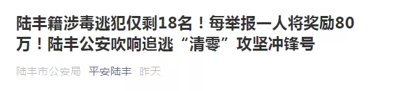 南方日报2020年12月3日讯 据广东汕尾陆丰市公安局官方微信“平安陆丰”1日消息,今年以来,陆丰公安大力开展涉毒“拔钉追逃”专项行动,共抓获涉毒逃犯75名(其中投案自首32名),现存陆丰籍涉毒逃犯数量已从2015年底最高峰时的329名降至18名。为进一步严厉打击毒品犯罪活动,举报涉毒逃犯奖金提升至80万元!同时,对18名陆丰籍涉毒上网逃犯进行公开悬赏通缉。