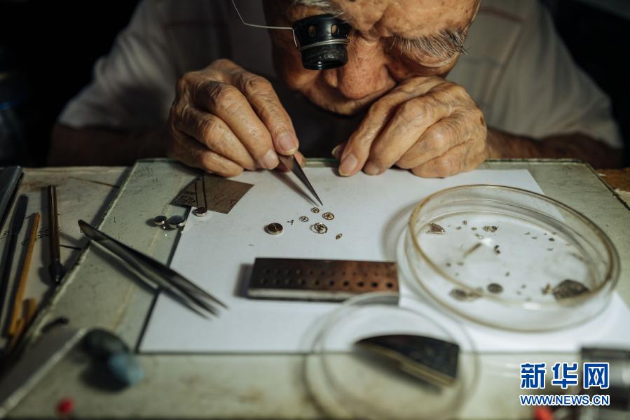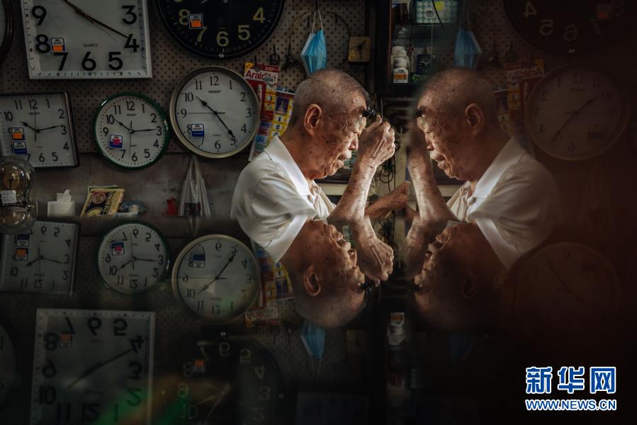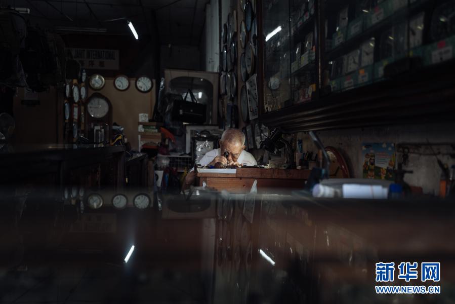12月5日,在马来西亚雪兰莪州巴生的郁昌表行,韦华在维修手表。新华社记者朱炜摄