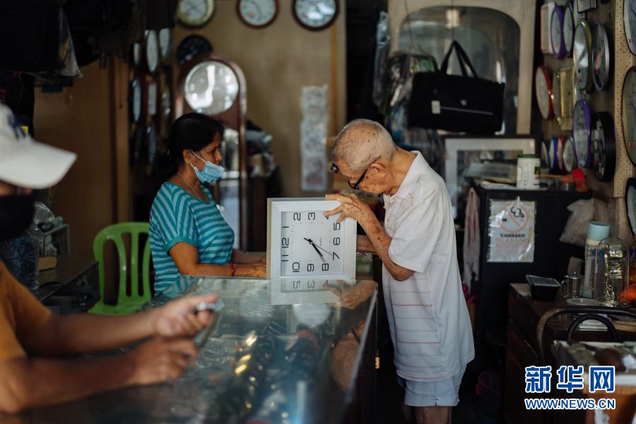 12月5日,在马来西亚雪兰莪州巴生的郁昌表行,韦华查看顾客送来的时钟。新华社记者朱炜摄