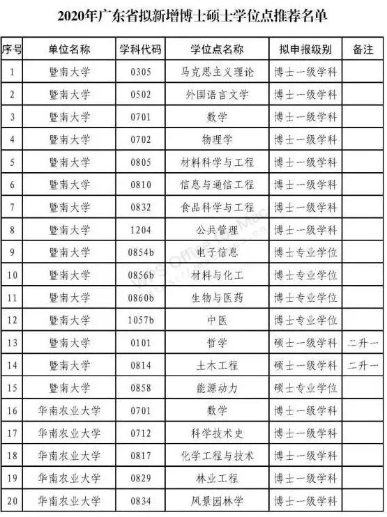 在博士专业学位拟新增名单中,深圳大学教育、电子信息、土木水利、生物与医药、临床医学5个学科,为数量最多单位,其次暨南大学、南方医科大学各有4个学科进入名单。