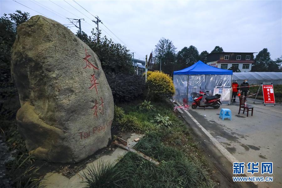 12月9日,在太平村一路口,村民志愿者和工作人员站岗执勤。 在成都疫情防控最前线——郫都区郫筒街道太平村,各项疫情防控工作正有序开展。太平村各路口均有工作人员和志愿者站岗执勤,严控人员进出。 目前,成都市已将郫都区郫筒街道太平村、成华区崔家店华都云景台小区、郫都区唐昌镇永安村8组升级为中风险区,实施全面现场管控和消杀。同时,还对郫都区人民医院、太平村11组、沙西农贸批发市场、郫都区岷阳学校、中冶中央公园小区、相关酒吧、餐饮店等区域实施现场管控和消杀。 新华社记者 沈伯韩 摄