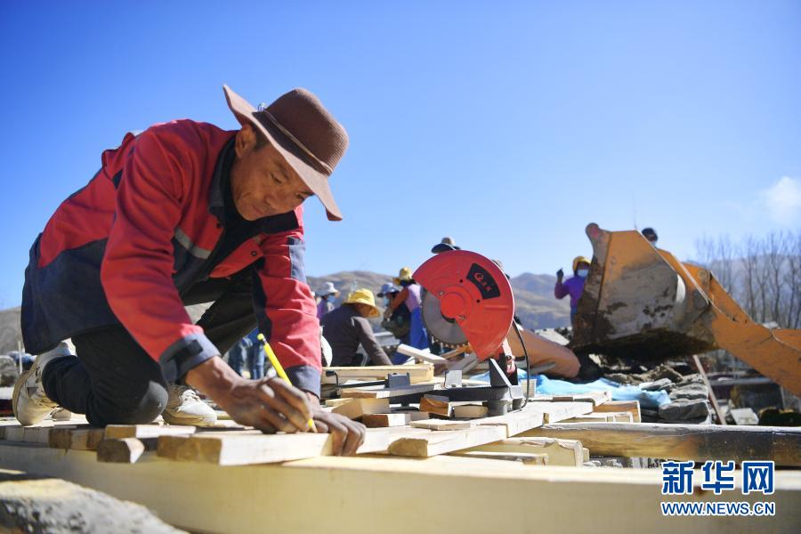 西藏山南市贡嘎县吉雄镇红星社区的居民打造新房屋顶(11月25日摄)。新华社记者张汝锋摄