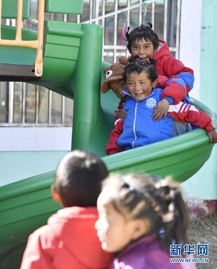 西藏山南市贡嘎县吉雄镇红星社区双语幼儿园里的孩子们在玩耍(11月25日摄)。新华社记者张汝锋摄