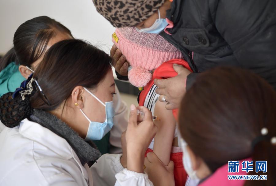 在西藏山南市贡嘎县吉雄镇红星社区便民服务中心,县疾控中心的医生为小朋友接种疫苗(11月25日摄)。新华社记者张汝锋摄