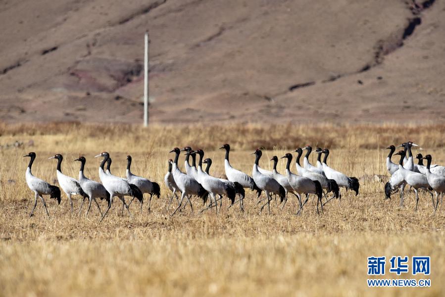 黑颈鹤在田野上漫步(12月12日摄)。新华社记者黄豁摄