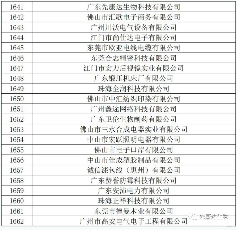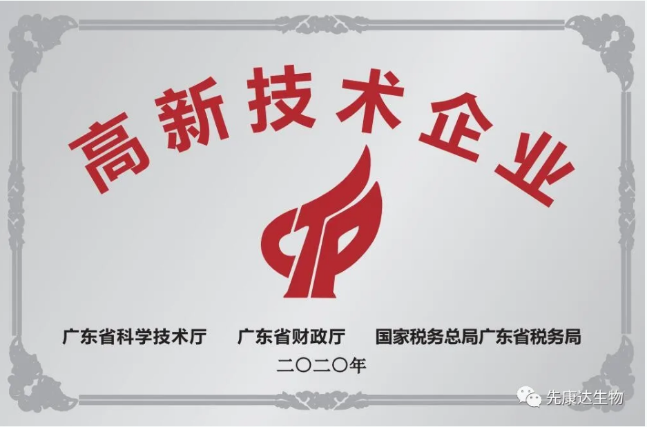 近日,广东省科技厅公布广东省2020年度第一批国家高新技术企业名单,广东先康达生物科技有限公司赫然名列其中,这标志着先康达生物迈上一个更大的台阶。