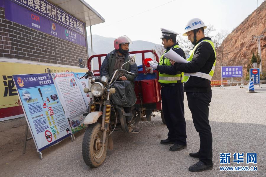 12月24日,在陇南市武都区安化镇樊家坝村,民警对过往三轮车进行安全检查。