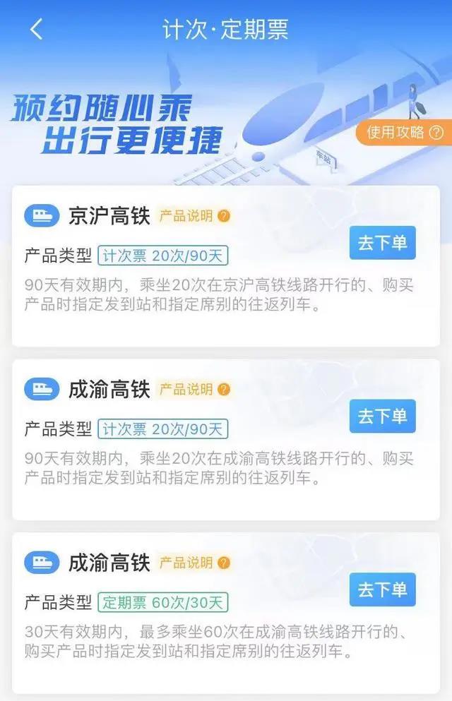 计次和定期票更适合商务差旅、通勤人士,有利于定期跨城出行的人群。