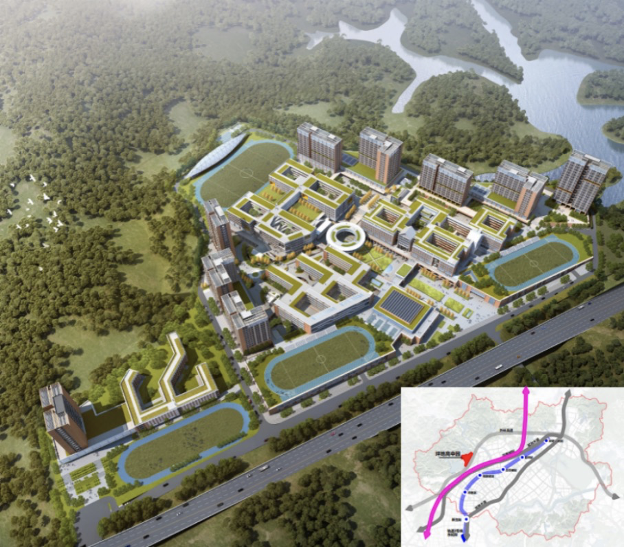 项目位于龙岗区坪地街道,用地面积约20万平米,建筑面积约30.7万平米;主要建设教学楼、综合楼、师生宿舍、体育场馆等校舍及附属设施;项目一期规划建设3所高中(共162班),新增8100个公办普通高中学位,将有效缓解全市高中学位供需紧张的矛盾,促进全市高中阶段教育均衡优质发展。