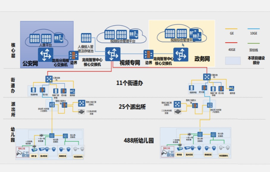 项目位于龙岗区,在全区488所幼儿园建设、改造视频监控系统并联网接入区视频综合管理平台,进一步完善幼儿园安全监控系统,实现对幼儿园区域的“全覆盖、无死角”监控,防范并及时处置各类安全隐患。