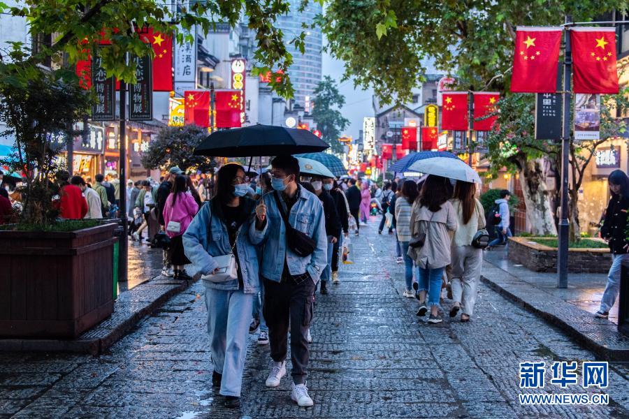 10月5日,湖南长沙太平街上人群熙熙攘攘。新华社记者陈思汗摄