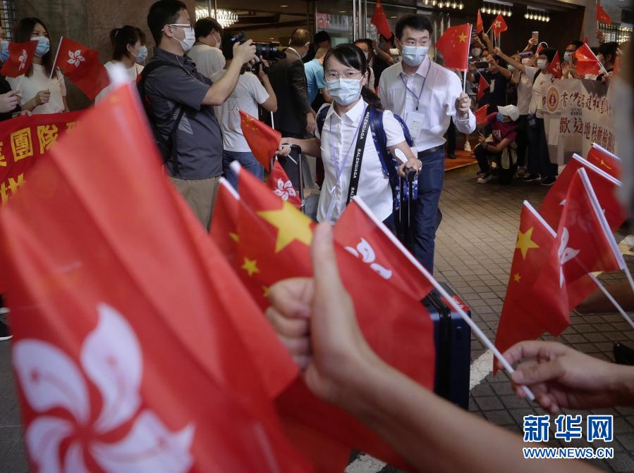 9月16日,圆满完成协助香港特区抗疫任务的内地核酸检测支援队队员们离开香港,香港市民夹道欢送。新华社记者王申摄
