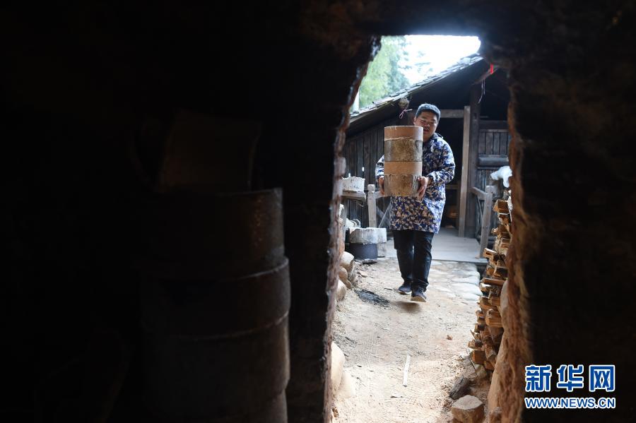 烧窑师傅周鹤年搬运沉重的匣钵到陈家窑内(12月25日摄)。新华社记者韩传号摄