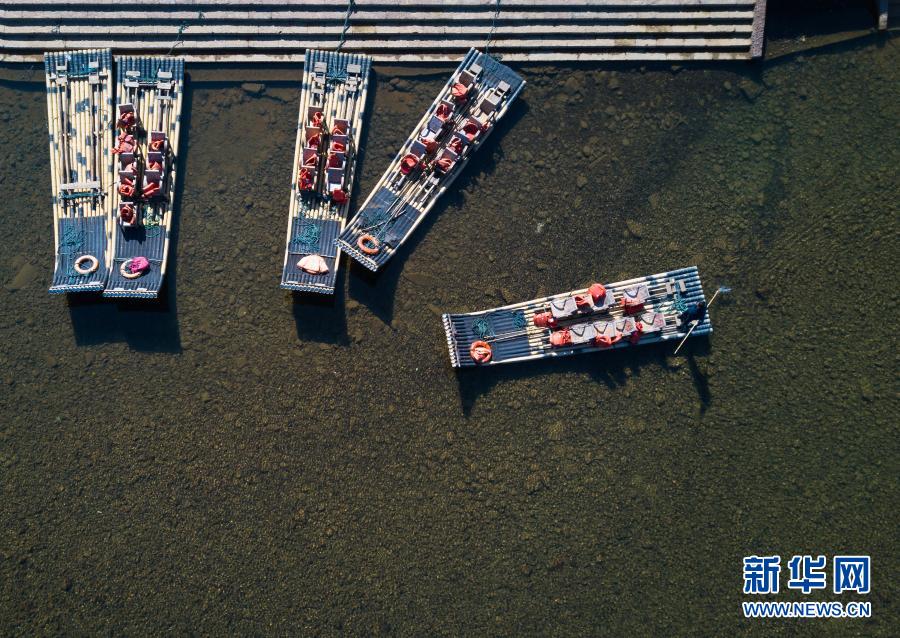 冬日,福建武夷山景区内的九曲溪水位回落,清澈见底,景色迷人。