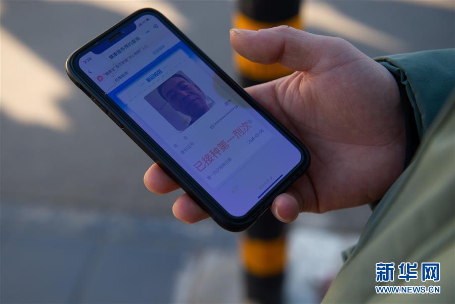 1月5日,武师傅打开北京健康宝小程序,上面显示“已接种第一剂次”。新华社记者 陈钟昊 摄