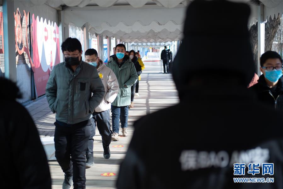 1月5日,武师傅(左三)排队进入疫苗接种点。新华社记者 陈钟昊 摄