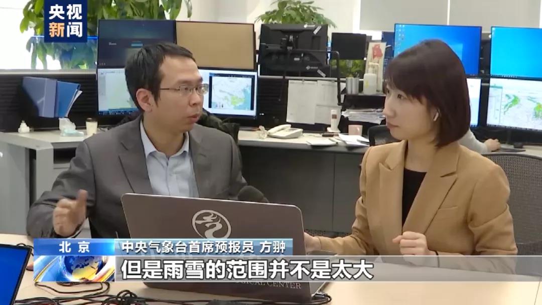 中央气象台首席预报员方翀:最近由于南支槽比较不活跃,没有明显的水汽上来,虽然到了降雪的温度,没有水汽就没法出现降雪。所以这次过程,整体上虽然寒冷,但是雨雪的范围并不是太大。