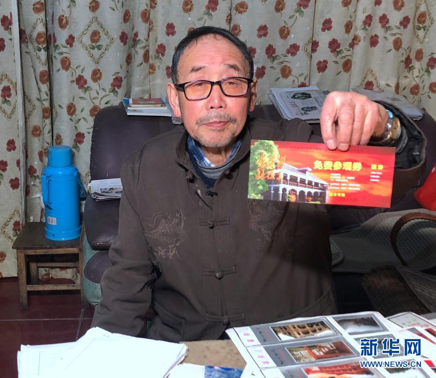 杨敏志在展示目前发行使用的遵义会议会址免费参观券(1月11日摄)。新华社记者 李惊亚 摄